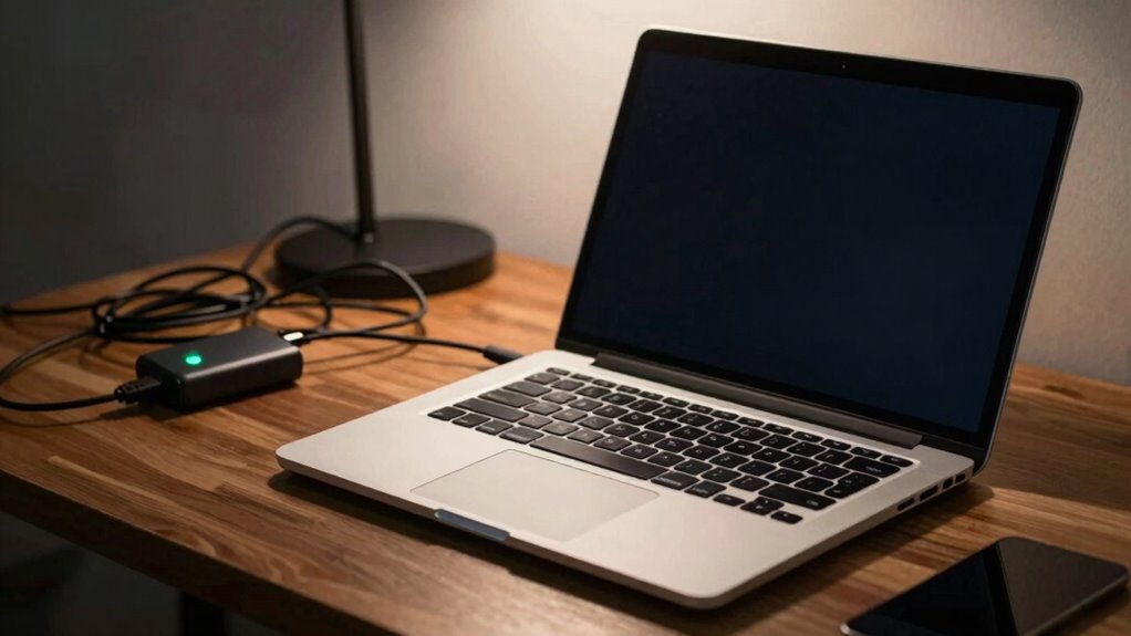 Sometimes, your laptop wakes up unexpectedly because certain devices or system settings trigger its wake function without your knowledge. For example, connected peripherals like a mouse or keyboard can send signals that wake your laptop, leading to unnecessary battery drain. Additionally, screen flickering caused by display or driver issues can also prompt your device to wake up. These interruptions not only drain your battery faster but can also disrupt your workflow. Check your device settings to disable wake timers for scheduled tasks or prevent peripherals from waking your laptop. Updating drivers and adjusting display settings can reduce screen flickering and prevent accidental wakes. Staying aware of these triggers helps you maintain better control over your laptop’s sleep behavior. Recognizing peripheral wake signals can help prevent unintentional wakes and extend your device’s battery life. Additionally, reviewing system power settings can identify other factors that might be causing unwanted wakes. Being mindful of power management options can further optimize your laptop’s sleep mode and energy efficiency.