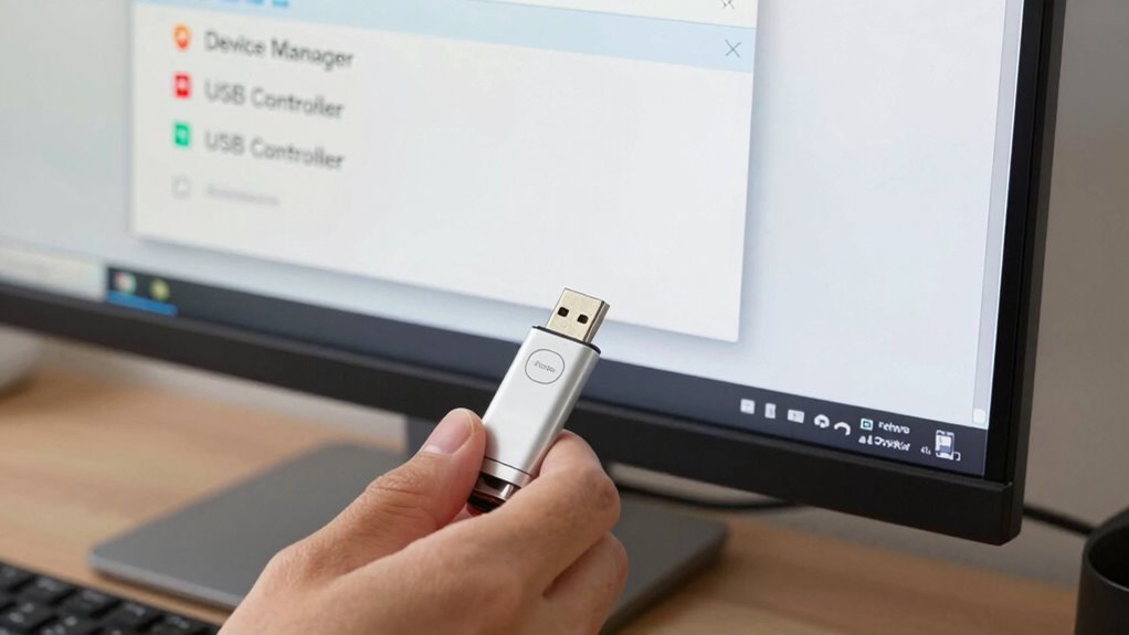 Updating your USB device drivers is a critical step in resolving recognition issues, as outdated or corrupt drivers often cause devices to malfunction. To guarantee your device operates smoothly, check for driver updates through Device Manager. Updating drivers can also improve USB firmware and enhance device compatibility, preventing future issues. When updating, pay attention to the driver version and source to avoid compatibility problems. Additionally, ensuring your drivers are from a reliable source can help maintain overall system stability. Regularly performing maintenance on your device drivers can help prevent conflicts and improve overall device performance. Keeping your drivers up-to-date ensures that your devices are compatible with the latest system updates and security patches. Incorporating measurement tools into your troubleshooting process can assist in diagnosing hardware-related problems more effectively. Being aware of driver update best practices can further streamline your maintenance routine.