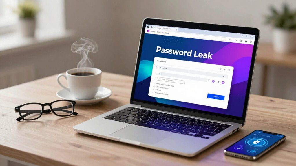 Once you’ve identified that your password was leaked, it’s essential to take steps to strengthen your overall password security. Start by creating a password with higher complexity—use a mix of uppercase, lowercase, numbers, and symbols. Enable two-factor authentication (2FA) wherever possible; it adds an extra layer of protection, making it harder for hackers to access your accounts. Avoid reusing passwords across multiple sites, and consider a password manager to generate and store strong passwords securely. Remember, your digital safety depends on proactive measures. Here’s an emotional reminder: Staying informed about security breaches helps you better understand the importance of robust password practices. Additionally, understanding cookie categories can help you make more informed decisions about your online security and privacy. Educating yourself about regional differences in urban and rural areas can also provide insights into potential security vulnerabilities associated with different locations. Being aware of common cyber threats can further help you stay vigilant and prepared against potential attacks. Moreover, staying updated on ocean discoveries can inspire a sense of curiosity and resilience in navigating the vast digital world.