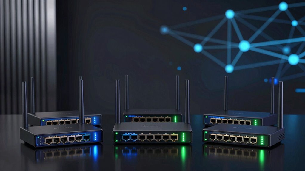 Yes, multi-gig routers can support multiple high-speed devices simultaneously. I’ve found that their multiple 2.5GbE ports and advanced technology guarantee smooth performance even when several devices are connected at once. They’re designed to handle the increased bandwidth demands of streaming, gaming, and large file transfers without bottlenecks. So, if you’re looking to connect multiple high-speed devices, a multi-gig router is a reliable choice to keep your network running seamlessly.
