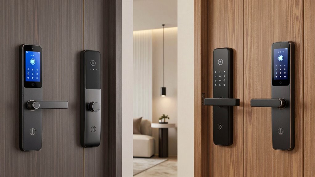 Surprisingly, most smart locks are designed to be compatible with popular smart home systems like Apple HomeKit, Google Home, and Amazon Alexa. I’ve found that compatibility varies by brand and model, so I always double-check before buying. While many locks work seamlessly with multiple systems, some may require additional hubs or apps. It’s essential to verify compatibility to guarantee your smart lock integrates smoothly into your existing setup.