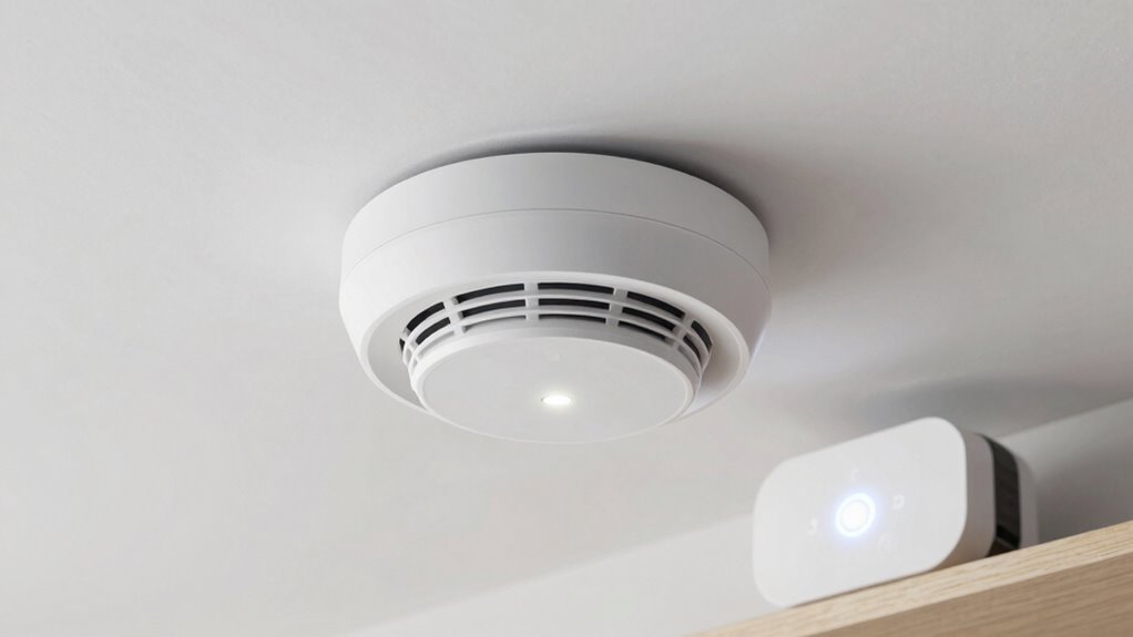 Even during a power outage, some smart smoke detectors can keep watch over your home, but only if they have a backup power source like batteries. Without Wi-Fi, they’ll still alert you locally with loud alarms, but you might miss remote notifications. I recommend choosing a model with a reliable backup battery to guarantee continuous protection, because peace of mind is worth the extra layer of security, don’t you think?