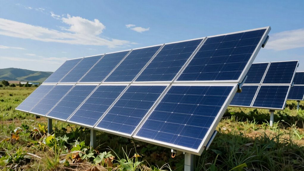 Think of warranty coverage like a sturdy umbrella in a storm—I want to know I’m protected. Typically, these panels come with a 2- to 5-year warranty, covering defects and performance issues. Some premium brands extend this to 10 years or offer a performance guarantee of 80% efficiency. I always recommend checking specific manufacturer terms, so you’re prepared for unexpected weather or wear and tear.