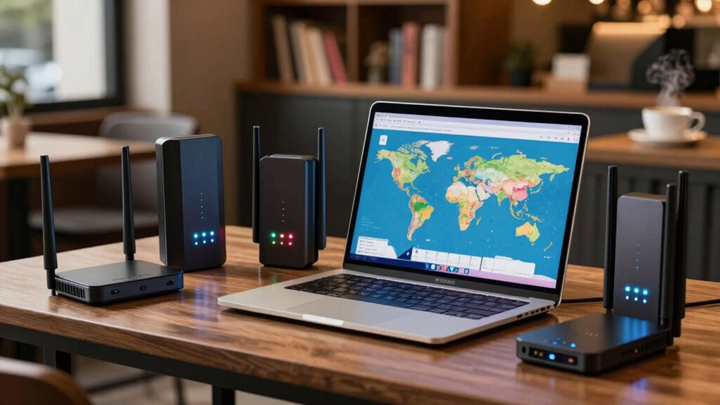 Travel routers won’t directly block malware or phishing attacks like a shield, but they can help by creating a more secure network environment. I see them as gatekeepers, filtering traffic and ensuring encrypted connections. By using a travel router with built-in security features or connecting through a VPN, I reduce risks. Still, I stay vigilant, avoid suspicious links, and keep my devices updated for thorough protection.
