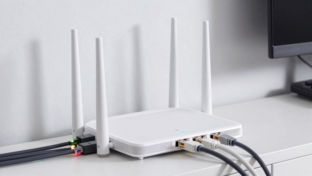 Think of your router as the brain of your network; keeping its firmware updated is like giving it a mental boost. You don’t always need to update your router firmware immediately after wiring, but it’s essential for maintaining router security and performance. Firmware updates patch security vulnerabilities and improve stability. So, to keep your network safe and running smoothly, check for updates regularly and install them when available.