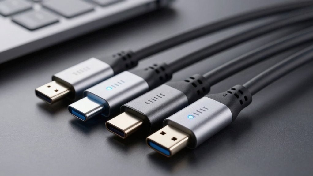 Did you know that USB‑C cables can transfer data at speeds up to 40 Gbps with the right standards? Knowing the differences between data and charging speeds helps you pick the perfect cable for your needs. By understanding certifications and avoiding common mistakes, you guarantee safe, fast, and reliable connections. Stay informed about evolving USB‑C technology to keep your devices running smoothly—because the right cable can make all the difference in your daily tech use.