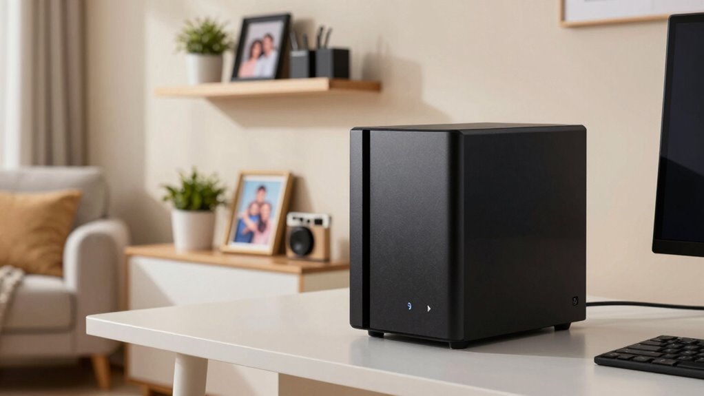 A NAS (Network-Attached Storage) is a centralized device connected to your home network that stores and shares files securely. Families love it because it makes accessing photos, videos, and documents easy from any device, anywhere. It also offers automatic backups, media streaming, and strong security features to protect your data. If you want to discover how to set up and optimize your NAS, there’s plenty more to explore.